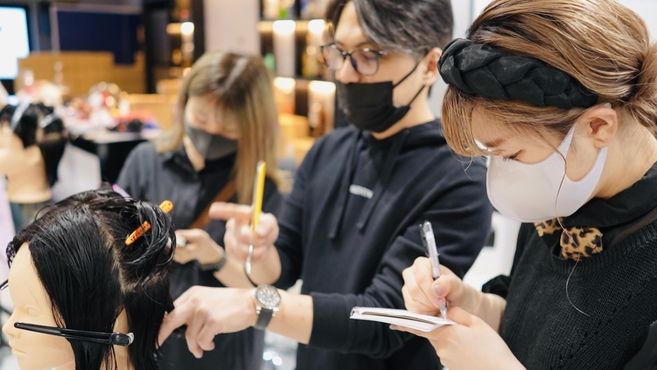 技術だけではなく、カラーや薬剤理論はもちろん、カウンセリングた接客の座学講習の時間も設けております!