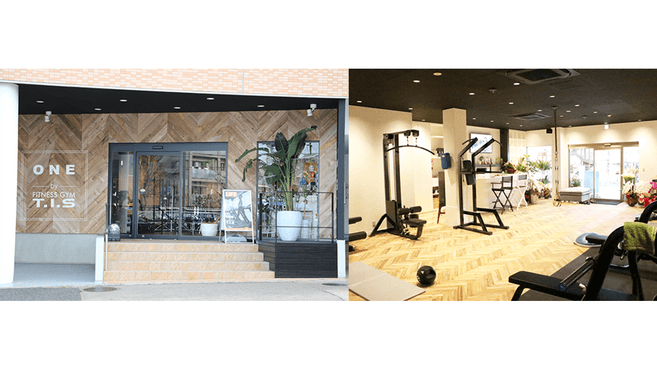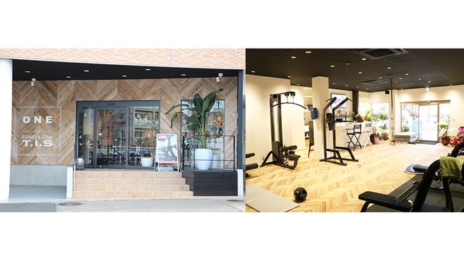 一階はフリーウエイトを中心としたトレーニングエリアおよび受付。