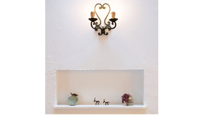 壁は漆喰、天然木をふんだんに使っているサロンなので、