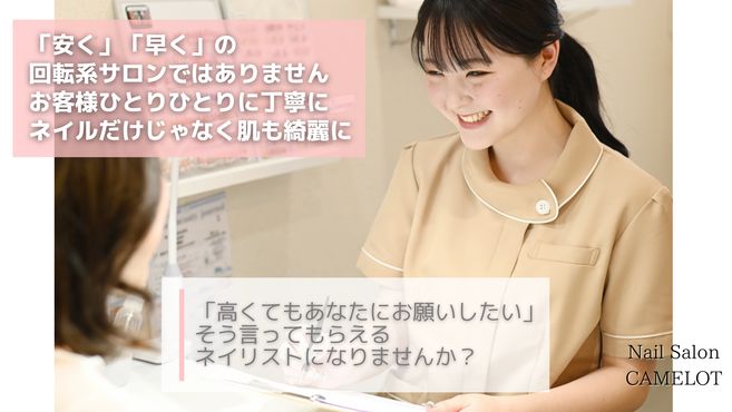 ネイルのこと以外にもキャメロットでの業務や予約のとり方、接客方法など優しくお教えいたします。