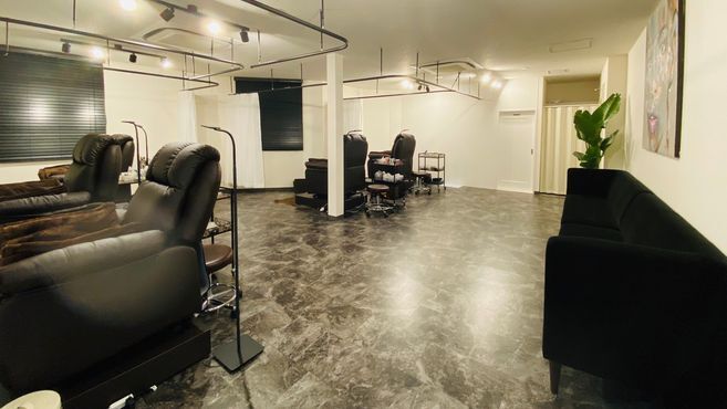 モノトーンでスタイリッシュなインテリア♪カーテンの仕切りがある半個室風のプライベートサロンです。お客さまはもちろん、スタッフにとっても居心地良く感じてもらえる空間をつくりました^^