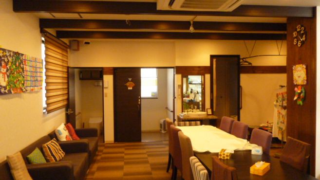 - デイサービスへ出掛ける時に、外出する際の少しでもお洒落をしてお出かけする気分の高揚を持って頂けるように、コンセプトとしてはカフェ風のデイサービスをイメージして設計しました。たまにカフェと間違えて訪れる方もいらっしゃいます。”せかんど 通い茶屋”では定期的に調理レクで利用者さんが共同作業で作ったお昼ごはんを頂きます。また最近できなくなってきた事を聴き取り、例えば家計簿をつける等スタッフがサポートして出来るようになり自信を取り戻して頂けるような活動をしています。