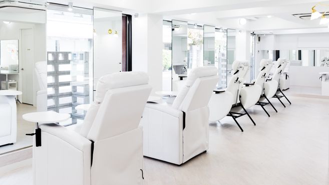 - 光が差し込む広々としたサロン店内は非日常を楽しんでいただける空間となっております