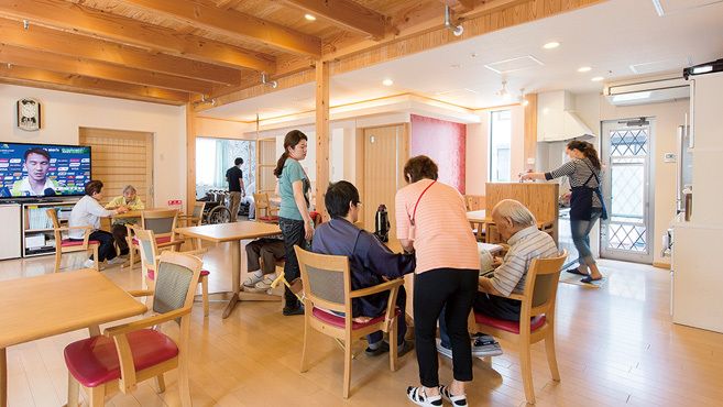 - 当法人の介護施設の一つでもある小規模多機能型居宅介護施設は、地域の方々に長年親しまれている家庭的な住まいで、建物は総ひのき造り。お部屋の広さは6畳以上(設備基準は4.5畳)あり、全室個室となっています。介助や施設への送迎も、お一人おひとりに合わせた、きめ細かい柔軟な対応で取り組んでいます。