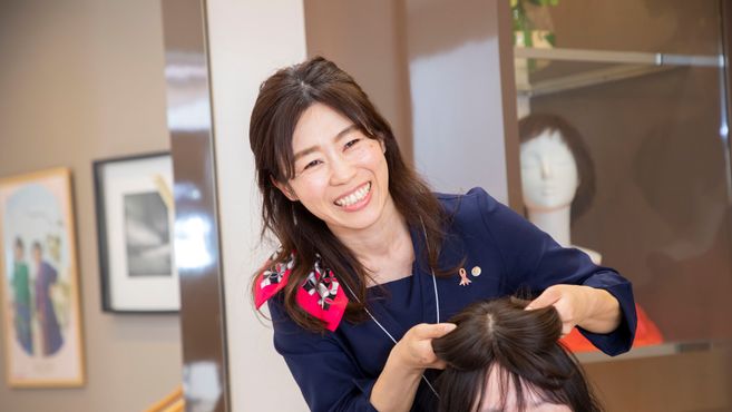 当社の仕事は、ウィッグを通してお客様の人生をよりポジティブにすることができる仕事です。 今までの美容師の仕事とは、また違った喜びをお客様に提供できます。