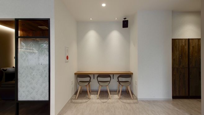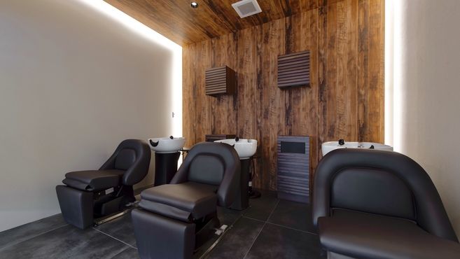 そしてこのシャンプーゾーンは半個室で裏側がスタッフルームと背中合わせになっていて、タオルの補充、回収は全てスタッフルームから出来ます。お客様の見える範囲で雑用が極力見えないよう工夫がしてあります。