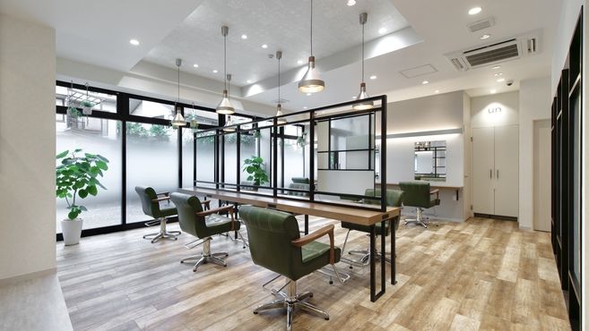 美容室を作る際、席と席の距離は基準がありますがunではその基準値より広く作ってあります。