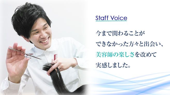 髪に悩みを持つお客様に夢と希望を与えています。美容経験を活かした社会貢献度の高いお仕事です。