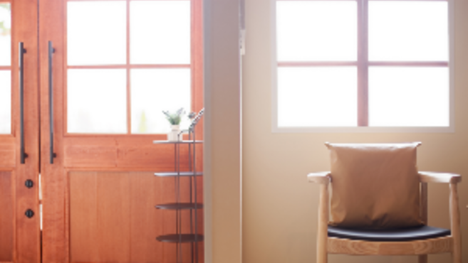 木製のドア・壁面タイル・窓枠はイタリアを思い浮かべる色合い、デザインになっております♪