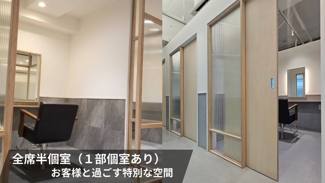 Atria united 川崎の上階に2020年4月OPENしたばかりの半個室サロン。ひとつひとつのスペースに余裕を持たせた半個室のセット面が9席、白と木に黒のアクセントが利いたちょっぴりラグジュアリーと好評ですよ♪スタッフ同士はというと仕事中はまじめに取り組み、オフタイムは和気あいあいの雰囲気♪チームワーク良く働いています!