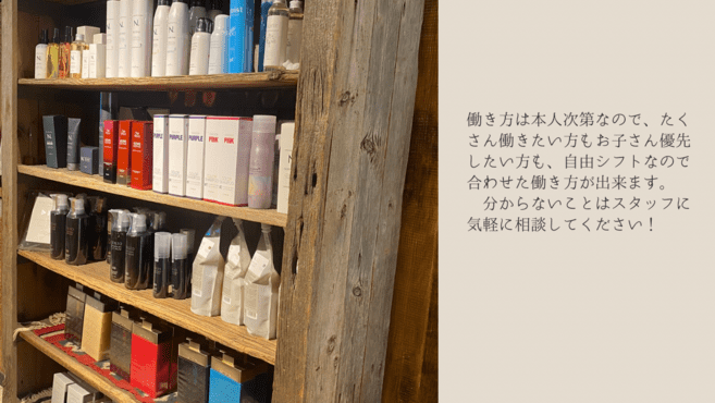 他サロンと掛け持ちしながら、自分のペースで働きたい方もOKです。