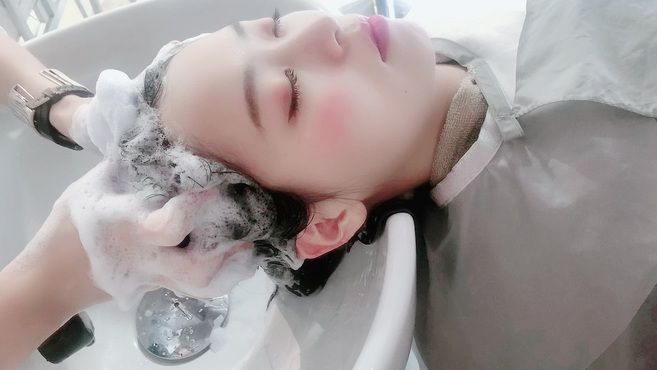 眠ってしまいそうなフルフラットでのオージュアヘッドスパ…♪