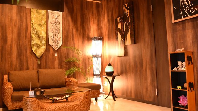 「asian relaxation villa」グループ独特のアジアンテイストと、バリのリゾートを彷彿とさせる落ち着いた空間のサロンです♪