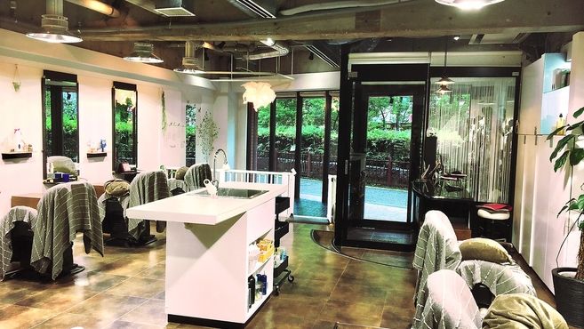 お客様の席から窓を見ると、大きな窓いっぱいに植物のグリーンが溢れている…そんな環境にこだわりここにサロンをつくりました。