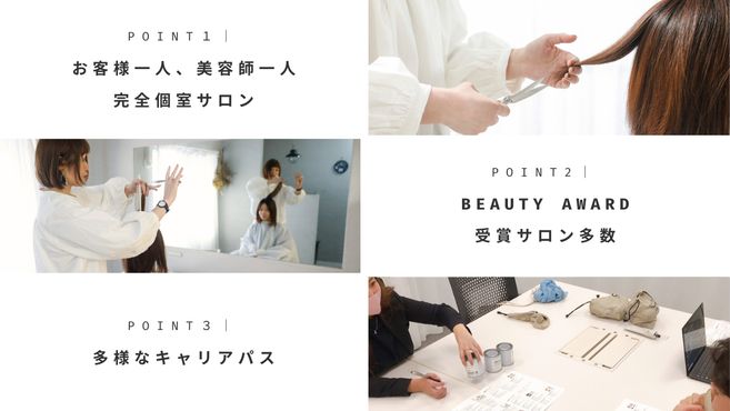 私たちの会社には、他にもさまざまなオリジナリティあるサロンがあり、自分にぴったりの働き方を見つけることができます。新しい仲間のご応募をお待ちしています!
