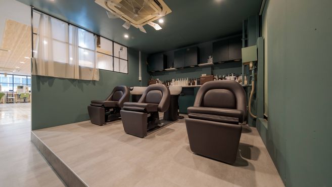 更に、全席シャンプー専用チェアの装備してあるので、バックシャンプーの際は座ってできるので腰を痛めることは有りません。こちらのシャンプー台はサイドシャンプーも施術可能なのでサイドシャンプーしか出来ない人でもOKです!