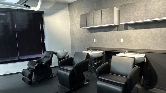 都内の流行を取り入れて、天井を高くして、色味は無機質な物を使用し、かっこいいサロンに仕上げています。