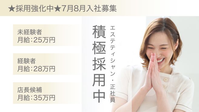 未経験で学歴や知識もなくても「エステティシャンとして活躍したい」という気持ちがあれば、技術や知識は身につけて着実に経験を積むことで、キャリアアップも叶います。