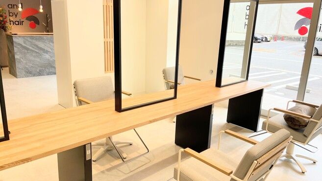 - コンセプトも兼ねた「and by hair」という店名はどのお客様にとっても普段の髪のお手入れや、わたしたち美容師もしくはお店との距離感がいい「塩梅」でありますように…という思いを込め名付けました^^