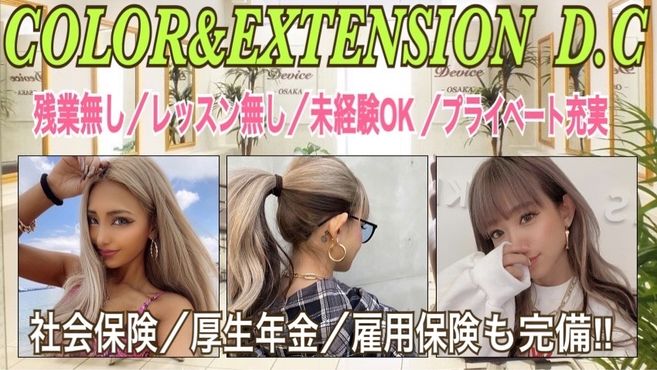 人気サロン『カラー&エクステンション D.C』は残業ナシ!!レッスンナシ!!未経験者OK!!手荒れの心配無し!!ネイルもOK!!