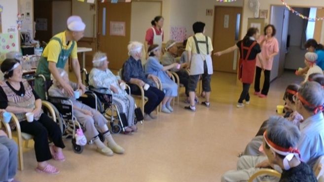 一般的に、認知症を発症されている方々には、記憶が残らないと言われていますが、どのような状態の方にも感情は残ると考え、毎日の楽しかったこと、嬉しかったことなど、様々な思いを積み重ね、ここは楽しい我が家だと実感して頂くために「家族のようなあたたかい家」というスローガンを掲げました。時に、ご本人が入所の理解をされておらず、戸惑った行動をされるような場面もありますが、利用者様の行動から今、何を感じておられるかを読み取り、不安であったり恐れであったり寂しさである感情にとことん付き合う姿勢を取ります。これから、長寿の家の家族の一員になっていただく利用者様に、我々が真摯に向き合う姿勢を感じ取っていただくために、必要な行動でありケアだと考えます。利用者様に打ち解けていただくためには、スタッフも努力を惜しみません。また、利用者様にとってのあたたかい家は、職員にとってのあたたかい家でもあります。職員同士が互いに思いやりを持ち、何事にも前向きに取り組んでいける職場です。
