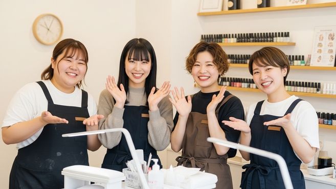 salon de merciで活躍しているのは、「ネイルが好き」という気持ちを持った、穏やかで協調性のあるスタッフばかりです。年齢層は20代後半~30代前半が中心で、経験年数は1年以上から5年以上と幅広く、皆がそれぞれのライフスタイルに合わせて無理なく働いています。
