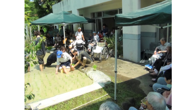 - ご利用者主体の介護を実践し、その中でも職員が実施したいことなどを積極的に取り入れ、ご利用者にも喜んでもらえるような行事を年間を通して行っております。地域の特性を活かし、花見や、田植え、稲刈り、農作物(葡萄、しいたけ、トマト、スイカ・・・)の収穫、鮎獲りなど年間を通して喜んでもらえるように施設運営を行っております。職員も、利用者様にも、「笑顔」で過ごしてもらえるような職場作りを常に目指しております。