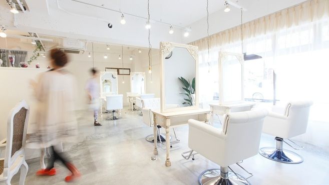 全員女性美容師で、あたたかさのある空気感です。白を基調とした店内は明るく、広々としています。