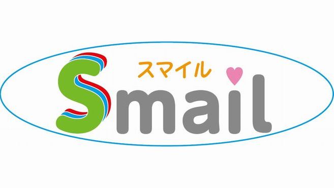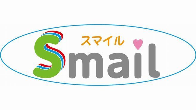ロゴマークのSmailをモスグリーン、水色、赤色で構成しています。