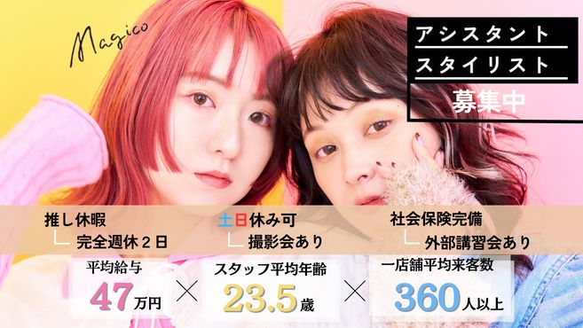 ⇒スタイリストには月平均100名の集客をしっかりサポートします!