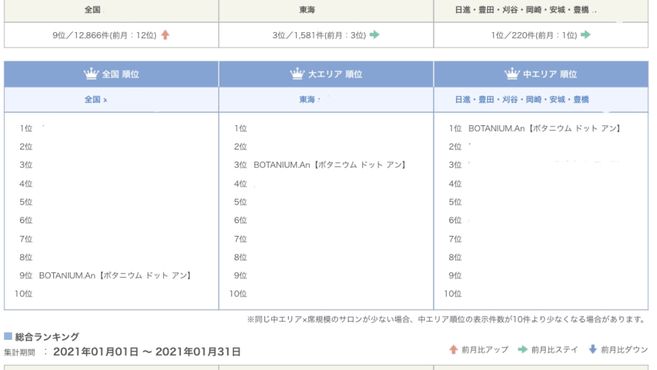 安城市のサロンながら 【 全国9位 】【 三河エリア1位 】を獲得☆