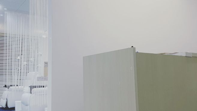白基調の内装にアクセントとして青を使用している為、シンプルな内装になっています♪