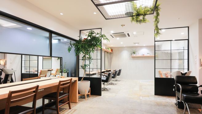 セット面9席にシャンプー3台。居抜きサロンを全面改装リニューアルして、カフェ風のおしゃれなサロンとしてOPENしました♪広く開放的な居心地よい空間づくりをしたので、初めてきた方も緊張せず過ごせましたと好評ですよ♪