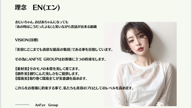 私たちは、東京・銀座・表参道・原宿で展開している「AnFye Group」の高知店として、縮毛矯正や髪質改善に本気で取り組んでいる美容室です。