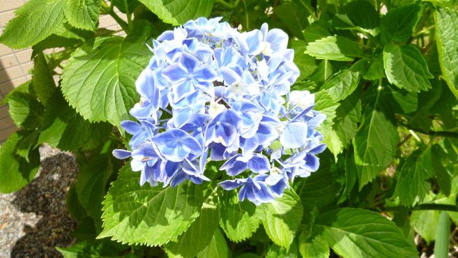 - 青い紫陽花の花言葉は「辛抱強い愛情」です。常に愛情を持って、時に楽しく、時に辛抱強く、笑顔で接遇にあたりたいとの願いが込められています。