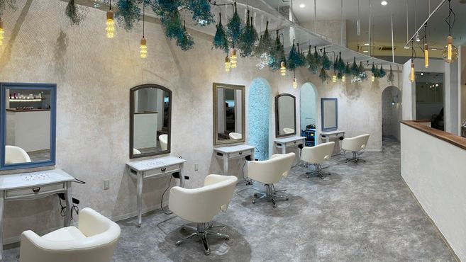 スタッフ全員がインテリアにこだわり、かすみ草や壁の漆喰、扉のペンキなどは手作りで仕上げております!!店長がとてもブルーが大好きなのでブルーを基調としたインテリアになっております(^^)★
