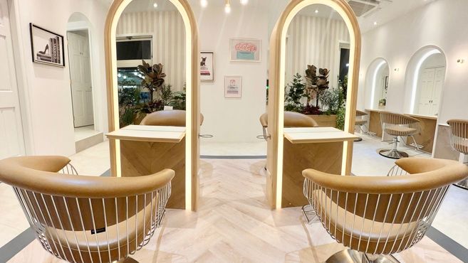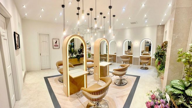 明るい空間でお客様をお出迎えし、【光】、【輝き】をイメージした店内は当サロンに携わる方を光り輝かせ、素敵なLIFESTYLEをお送りできるよう心がけております*