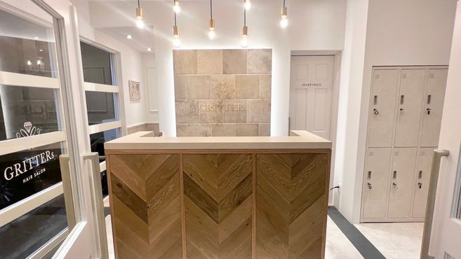 働く側にも施術のしやすい明るい店内フロアは狙い通りの色味、カットラインを引き立てます*