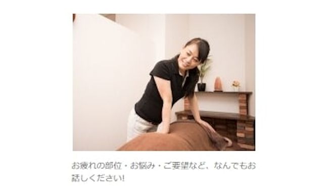 足つぼオイルマッサージをしに初めて行ったのですが、足つぼよりもカラダの悪い所を見透かされて急遽、足つぼの時間内にボディケアに変更して施術してくれました。