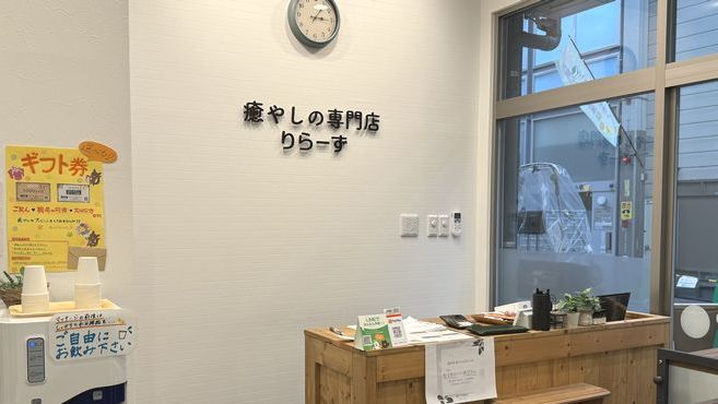 R4年春にOPENした「りらーず」は一歩中に入るとアロマ香る癒やしの空間♪胸上あたりの高さの仕切り壁があるので、プライベート空間でゆっくりできると好評☆少人数制なのでスタッフルームは和気あいあいとしています^^