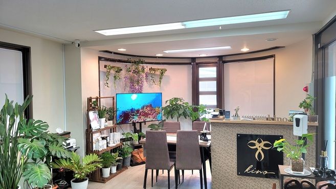 沖縄やアジアンリゾートをイメージした、落ち着いた雰囲気のサロン♪施術ルームは個室なのでプライベートな空間でキレイになれると好評ですよ!トイプードル2匹が看板犬として一緒に働いています^^