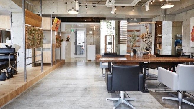 インダストリアルにナチュラル感をプラスした、洗練された中にも居心地の良さを感じる…そんな「カフェみたいなサロン」づくりをしています。某集客サイト年間口コミランキング1位の実績があるサロンなので、いつもお客さまとスタッフの笑顔があふれていて和気あいあいな雰囲気です。