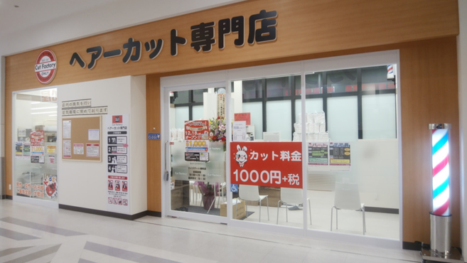 ショッピングモール内、普段着で気軽に利用できるカット専門店です。