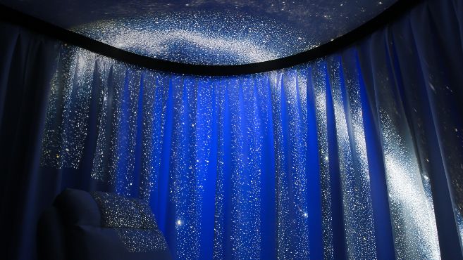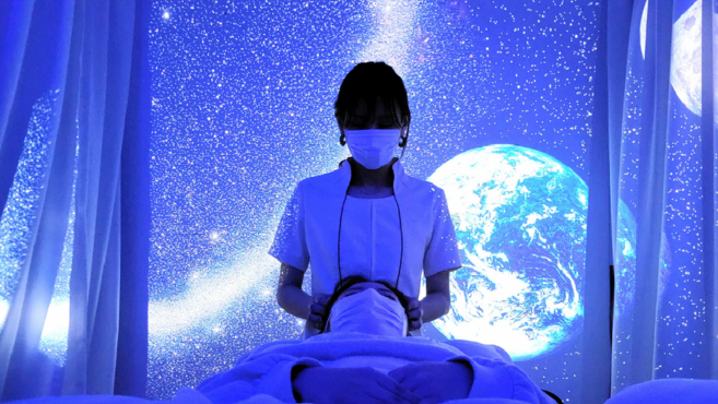 - 「星空を見ながら心地よいヘッドスパを」をテーマに、サロンの中はプラネタリウム風の癒し空間を演出しています。