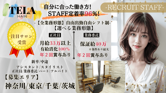 TELAHAIRでは業界初の複数年契約制度や年2回の賞与など初めての業務委託の方でも働いていただけます。