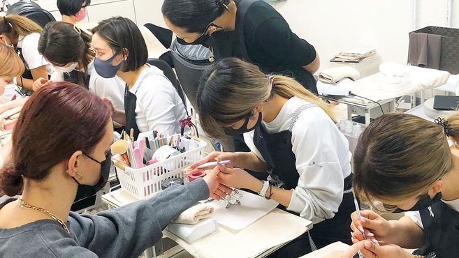 都内では月に30回程、定期的な技術研修会を開催。苦手分野の克服はもちろん、新しいアートや技術についても、インストラクターが指導します。