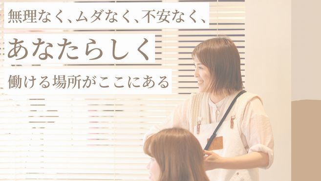 今まで生きてきた中で1番お給料がいい! 給料が毎月右肩上がりになった! 前の職場と比べてお給料が2倍になった! 営業が終わればすぐに帰れて嬉しい! 営業時間外の残業やミーティングがないから身体がラク! 仕事とプライベートの切り替えがしやすくなった! フレックスタイム制&土日祝日もお休みが取れるので子育てと両立できる! 空いた時間に買い物やカフェに行くなど心に余裕ができた! ノルマがないのでプレッシャーを感じずに働けるようになった! 集客をしなくても1ヶ月以上先までお客さまのご予約で埋まっている!ノンダメージサロン®︎で働いてから美容師という職業の概念が変わった! これらは、当店で働くスタッフから届いた言葉の数々です。 今でこそ、このような働き方を実現しているスタッフも、かつては 頑張りにお給料が見合わない 拘束時間が長く、体力的につらくなってきた 体力がもたないので休日はほとんど寝て過ごしていた自分の力では月30~50万円の売り上げが限界だった 予約のない時間に手持無沙汰になってしまうのがつらい売り上げを作っているスタッフと比較されて肩身が狭い ヘルプに入ってタダ働きばかりしている 営業時間後も後輩の指導や講習会がありヘトヘト 子育てとの両立は無理だと感じて美容師の仕事から離れることになった と悩んでいたひとりでした。 このように「頑張っても、頑張っても報われない」そんな思いで「ノンダメージサロン®︎」にたどりついた方々が、今では見違えるように生き生きと働いてくれています。