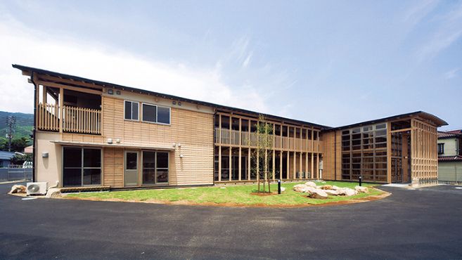 建物は木造2階建てで木の温もりや温かさがあり、開放的なウッドデッキからの気持ちのよい風や日差しが入り、明るい造りになっています。
