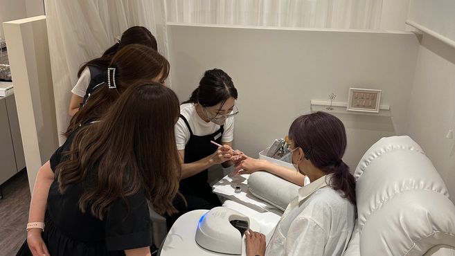 数ヶ月に1度、ネイル講師を招いての研修、セミナー受講や資格取得支援もあり、今後はメイクやマナー講習なども始める予定です。
