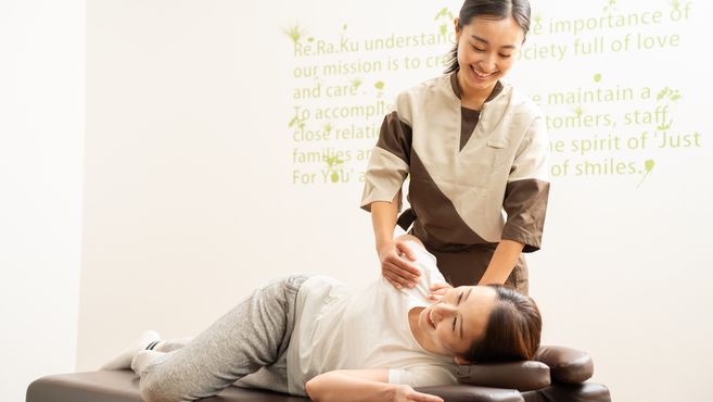 関東圏を中心に東京No.1の店舗数で 展開するリラクゼーションスタジオ。Re.Ra.Ku(リラク) 独自のメソッドである 「肩甲骨ストレッチ」を中心に、 筋肉に負担をかけず柔らかくすることで、 首肩腰などの疲れを緩和し、疲れにくい 身体づくりをサポート致します。